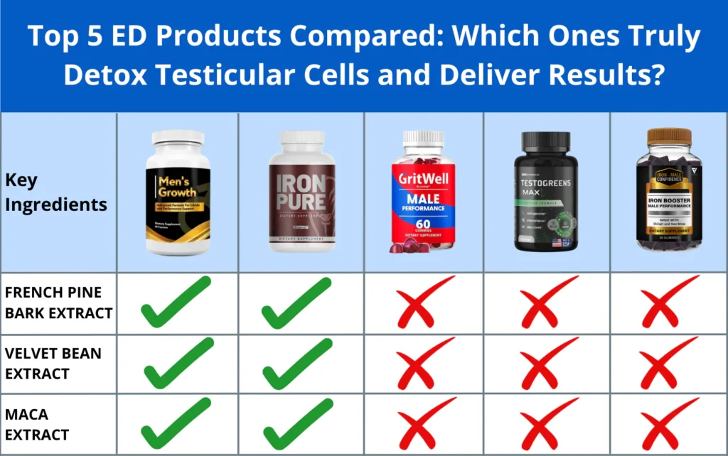 Our comparison isn’t here to discredit every other supplement or ingredient on the market. But let’s be honest — the latest scientific research, widely covered by leading news outlets across the globe, makes one thing crystal clear: only a handful of ingredients truly work when it comes to detoxifying testicular interstitial cells — the critical trigger for real, lasting Erectile Dysfunction.